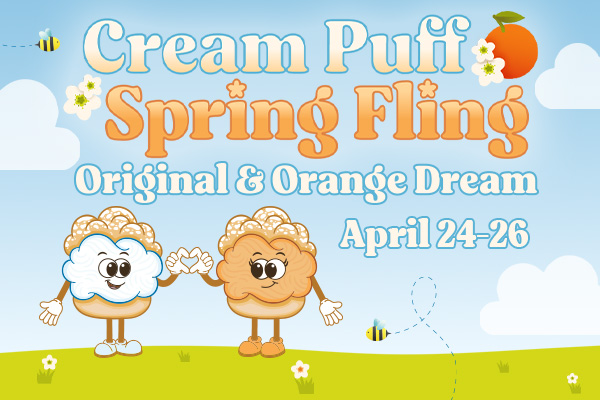 Follow your nose to the Cream Puff Spring Fling Drive-In, Friday, April 24 - Sunday, April 26! Dig into the classic Original you know and love or try our new delicious Orange Dream flavor that tastes just like a creamy vanilla and orange popsicle.
