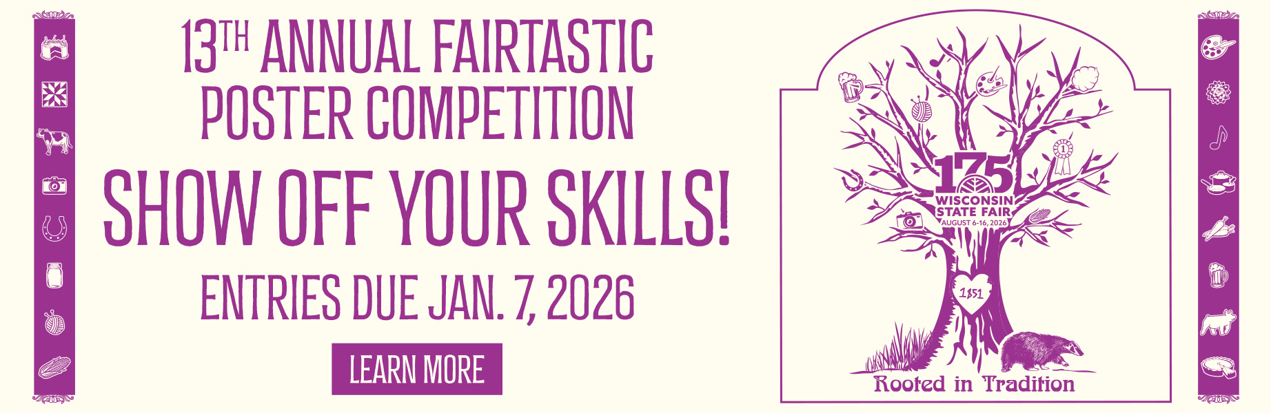 Questions regarding entering Wisconsin State Fair can be emailed to entryoffice@wistatefair.com