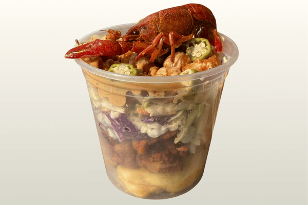 Bayou Crunch Cup is a towering cup of southern comfort, stacked with crispy sidewinder fries, Cajun slaw and tender alligator nuggets. Breaded crawfish bites and a rich comeback sauce add a bold, zesty kick in every layer. Finish this dish off with pickled okra and a whole crawfish on top for big bayou flavor and true Fair wow factor.