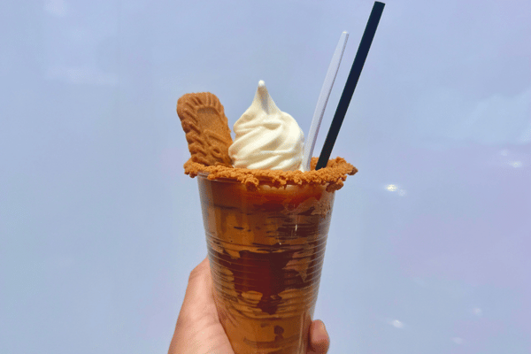 Follow the cookie butter craze to the Cookie Butter Coffee Float! This float blends delicious vanilla ice cream and cookie butterinfused iced coffee to create a refreshingindulgent drink. Topped with Biscoff cookie crumble rim, drizzled with cookie butter drizzle and garnished with a Biscoff cookie – yum!