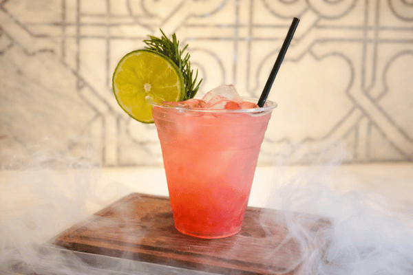Tilt-a-Spritz is a playful nod to the State Fair's iconic SpinCity! And like the ride itself, it's designed to be an experience from the very first moment. The bright ruby grapefruit and key lime juices deliver a vibrant citrus flavor with ginger beer effervescence for a crisp finish. Sealed in a smoke box with hickory and torched rosemary, open the door to reveal a dramatic cloud before the first sip.